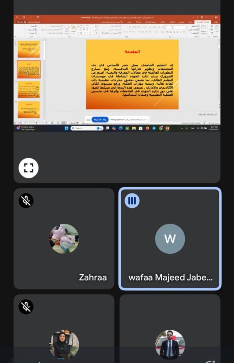الشعبة العلمية في كلية التقنيات الصحية والطبية تقيم ندوة الكترونية بعنوان ” إدارة الجودة في