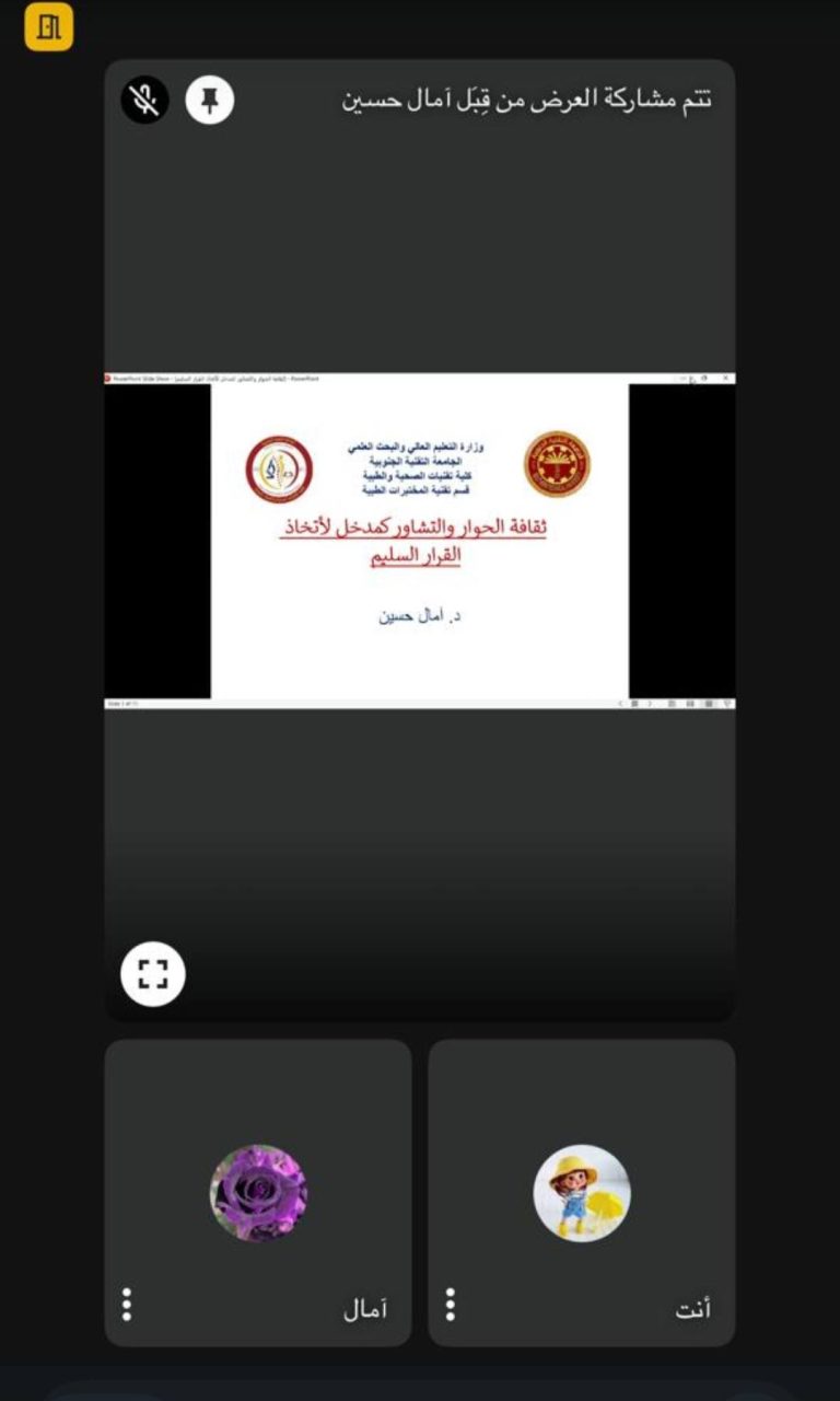 ضمن الخطة الاستراتيجية الوطنية كلية التقنيات الصحية والطبية تقيم ندوة الكترونية على منصة google meet