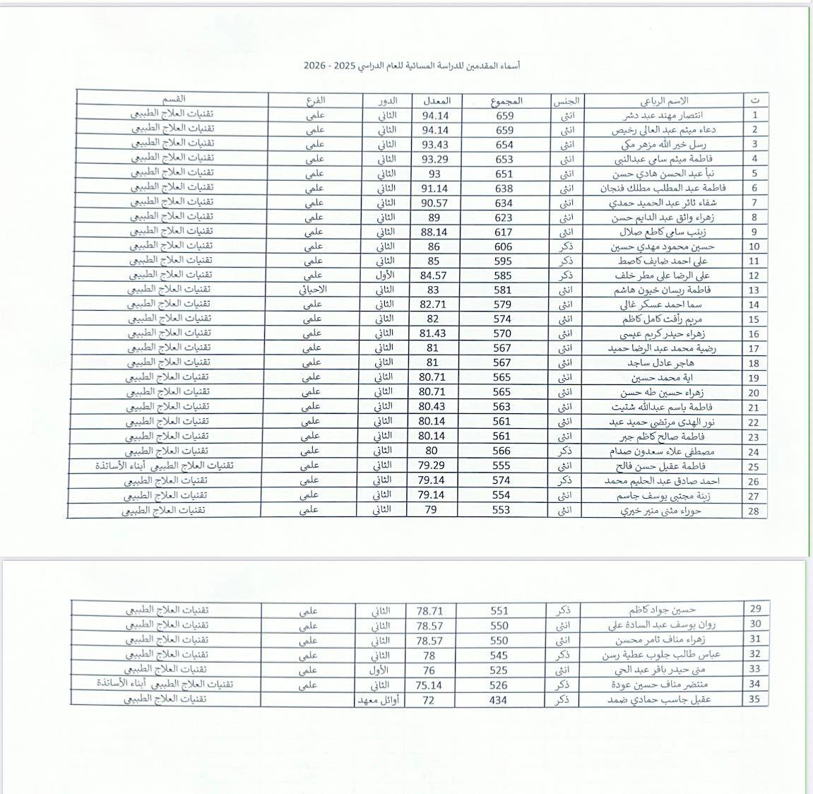 يسرّعمادة كلية التقنيات التقنيات الصحية والطبية أن تعلن عن صدور أسماء الطلبة المقبولين في الدراسة المسائية للوجبة الأولى لكافة أقسامها للعام الدراسي 2026/2025 . تدعو عمادة الكلية الطلبة المقبولين في الوجبة الاولى مراجعة العمادة / شعبة شؤون الطلبة لغرض أكمال أجراءات التسجيل . ملاحظة مهمّة: […]